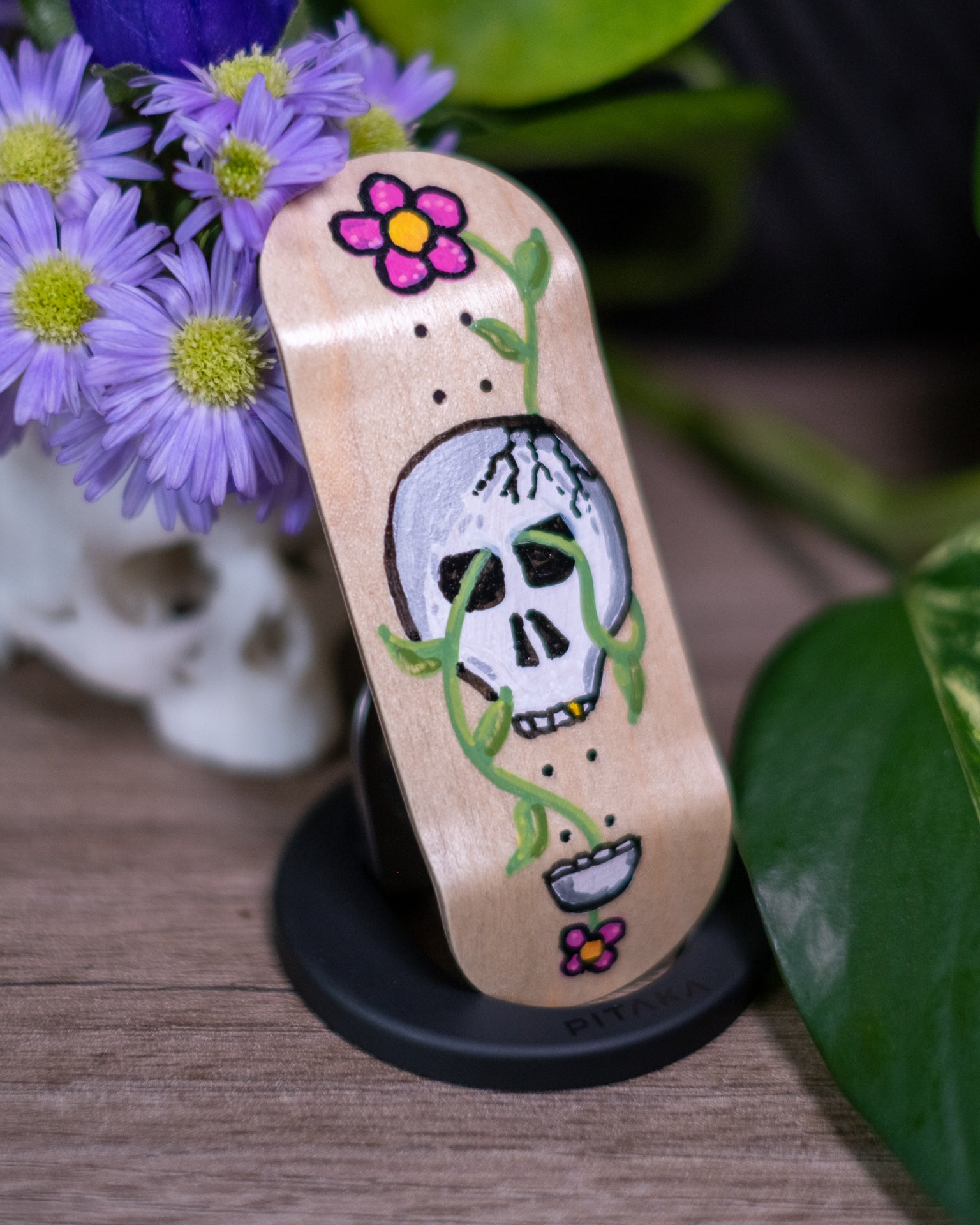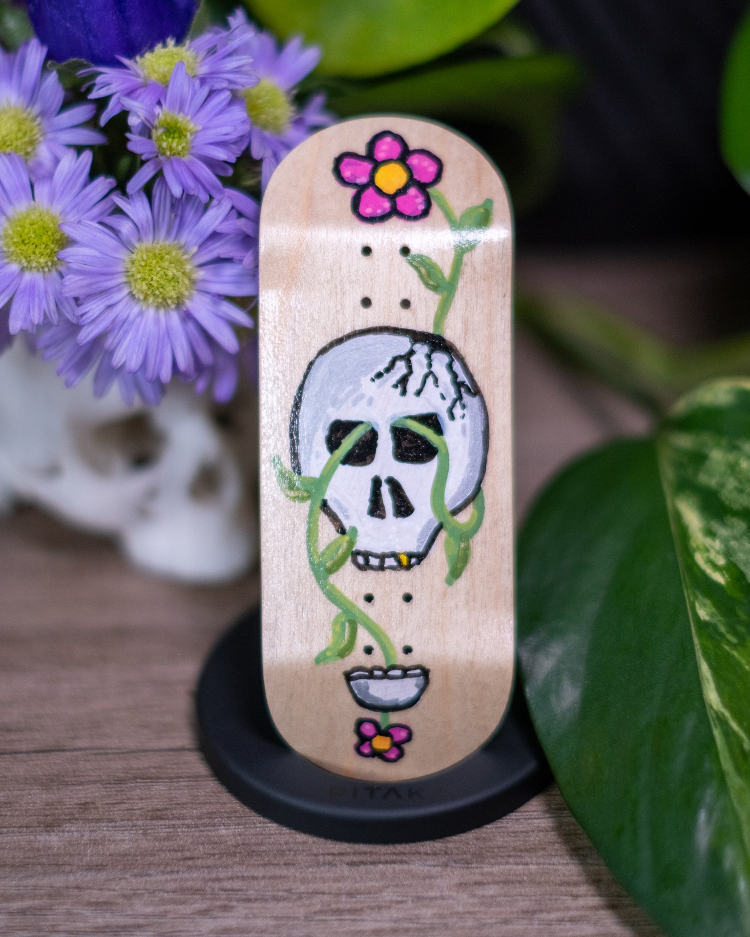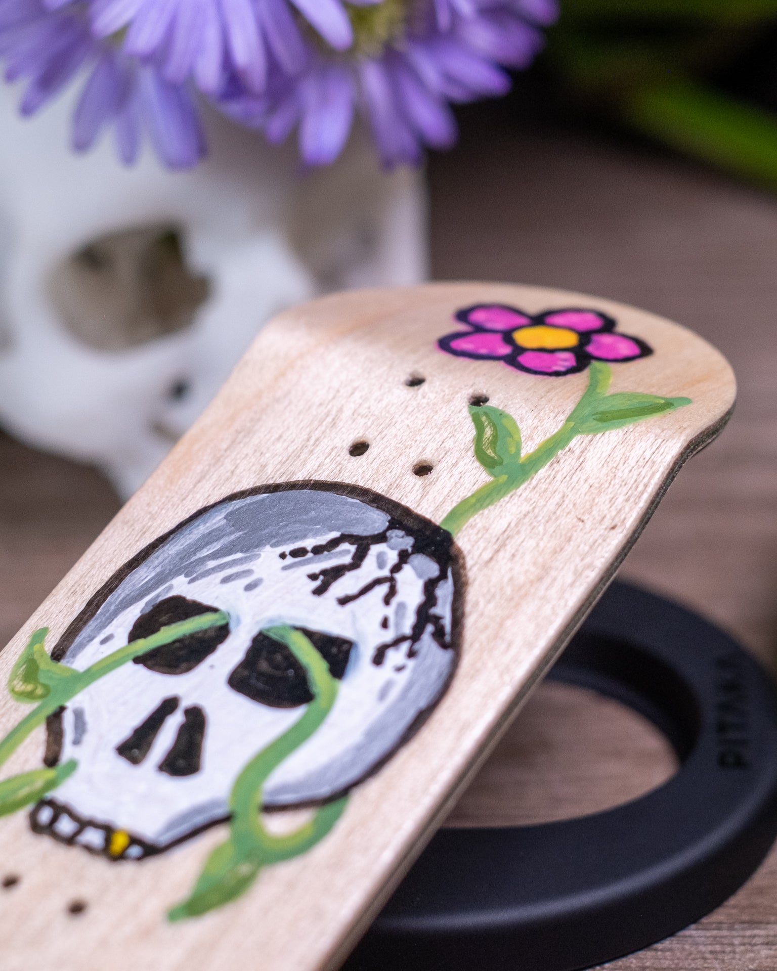 This one is enamel coated, hand-painted with acrylic paint, then coated again.