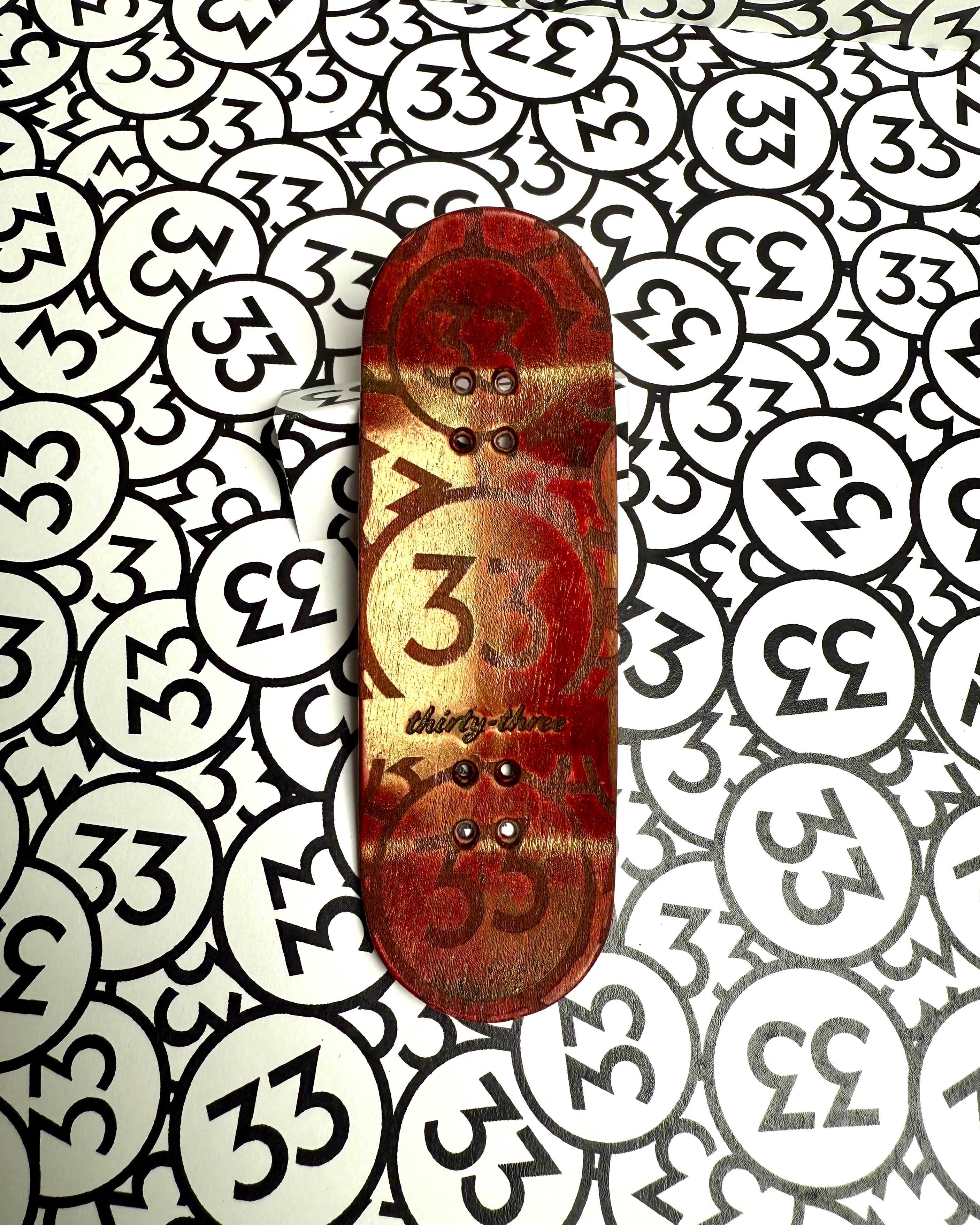 The Deck lets you build your ideal fingerboard from a curated set of options. This one is premade using the Med/High Kicks & Med/High Concave mold and cut to the Pops shape. Tailored feel, pro-level performance, and all thirty-three.