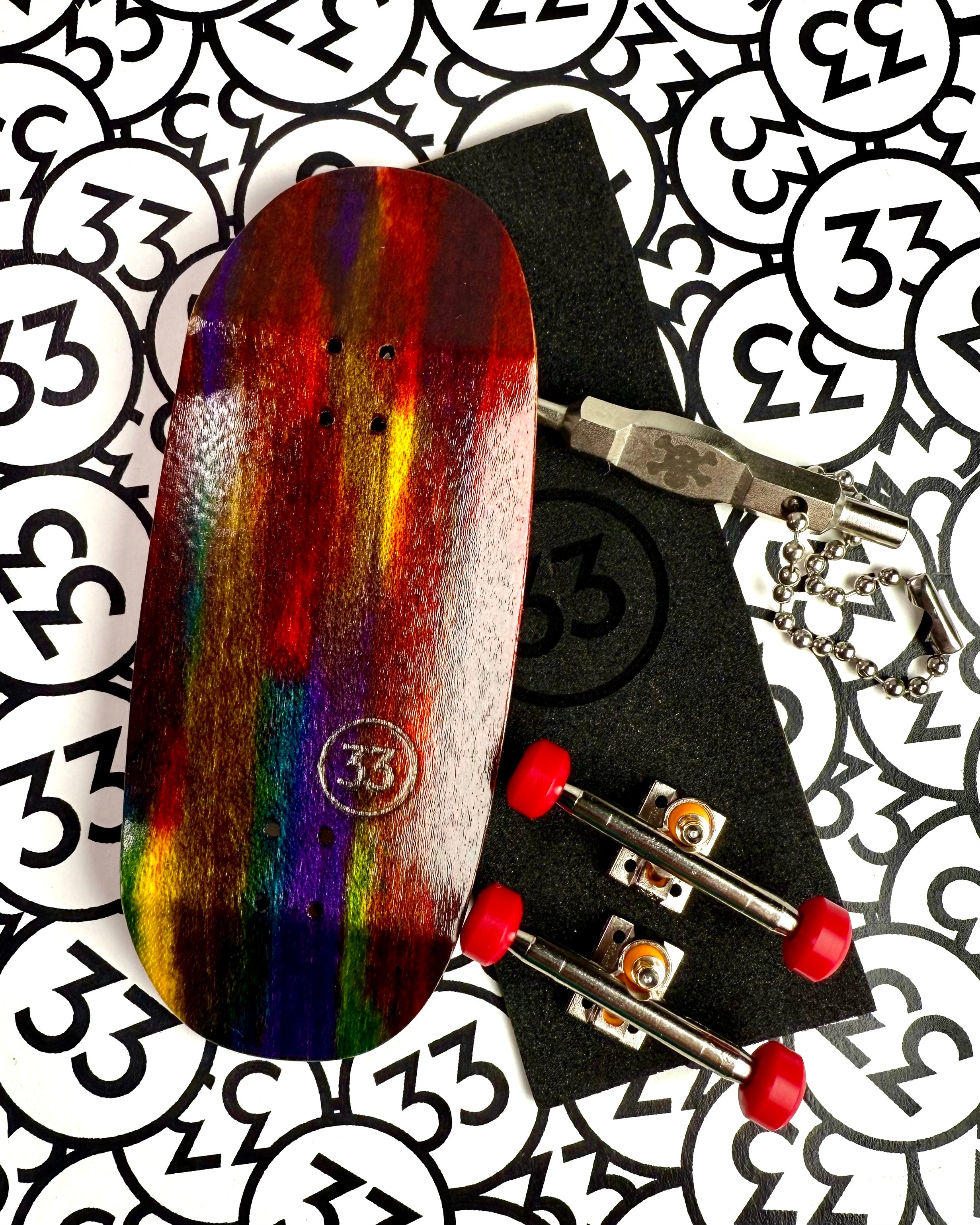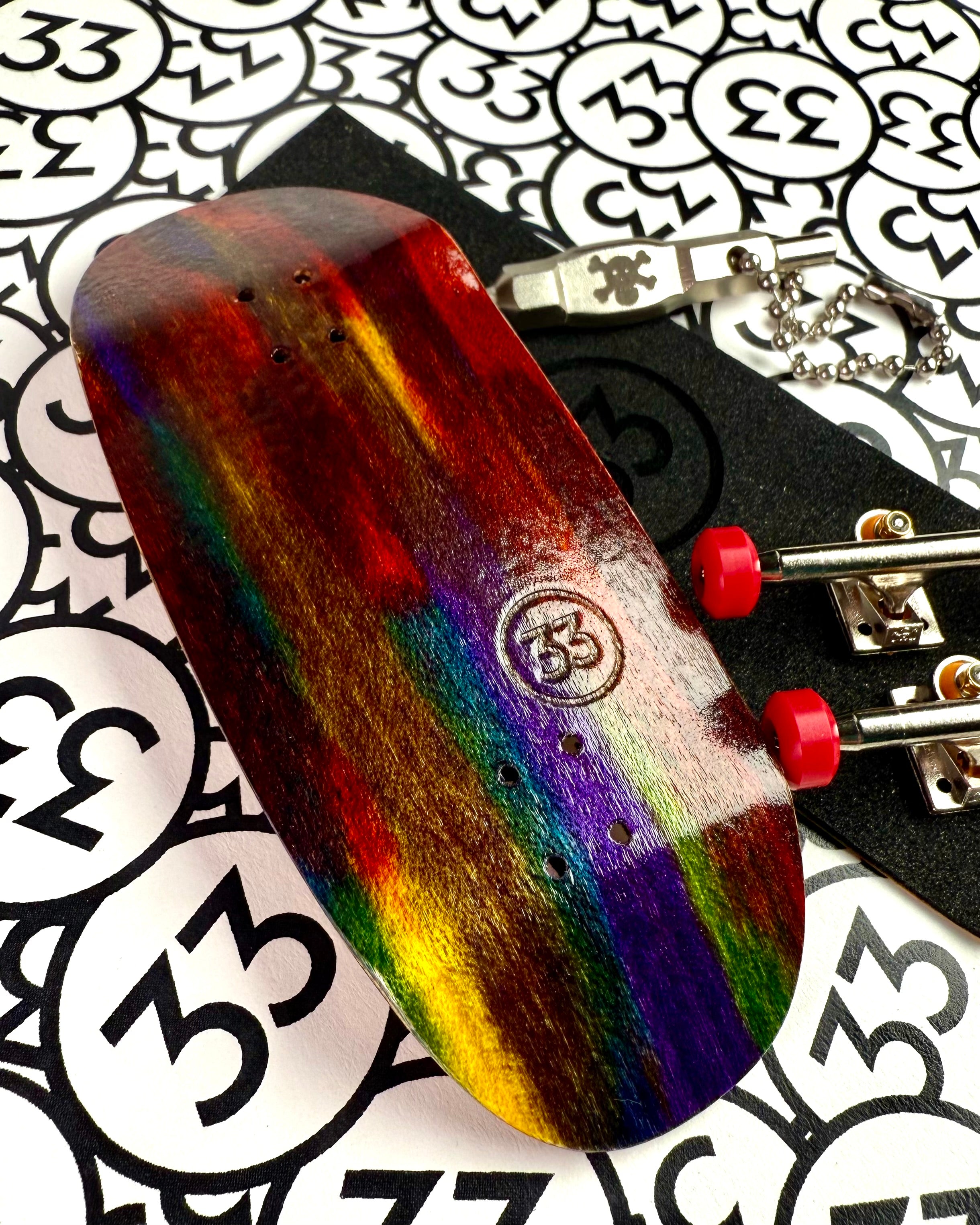 The Tie-Dye Deck brings a bold stained colorway to the lineup, blending vibrant hues with a clean 33 stamp. Built on our Cero shape, this 98mm x 36mm deck is balanced, versatile, and ready to ride.