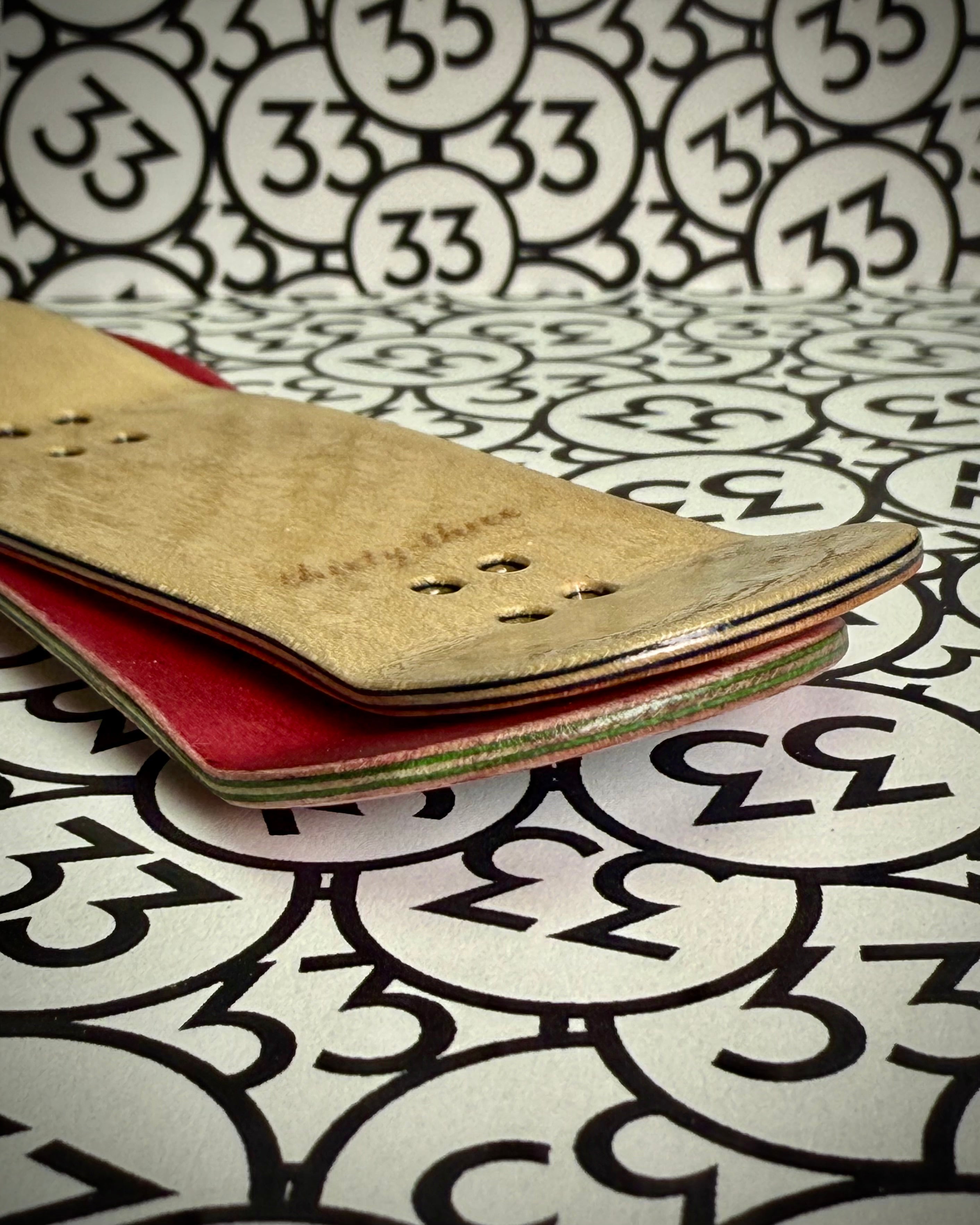 The Deck lets you build your ideal fingerboard from a curated set of options. Select your preferred width, length, one of 6 proven molds that take it from mild to wild, and 5 classic shapes to match your style. Each deck is pressed to order using premium plies with randomly selected colors / woods / designs, making every board unique. Tailored feel, pro-level performance, and all thirty-three.